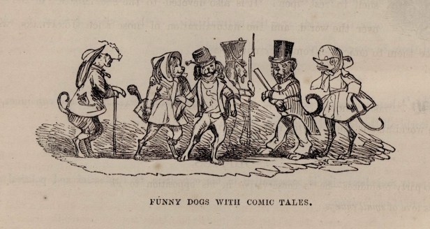 Above is a digitized image made with help from my lovely supervisor, Val. The extracted image is from Punch’s first publication in 1841 (show of hands for those who remember this period, well done for reading this). It’s called Funny Dogs with Comic Tales showing dogs acting as humans, dressed as humans and interacting as humans. However subtle, there are expressions shown in each of the faces of the ‘people’ (can we call them that?) and they indicate a sense of conflict between one-another. I find great satisfaction of Punch’s satirical humour, metaphorically insulting people – especially politicians. The ‘politician’ part is just a little bit too relevant for us Brits right now. A great example of this is a funny image located on page 139 of the 1841 periodical – have a giggle on me (hint: the page is literally peacocking at you and it tells a funny s-tory).