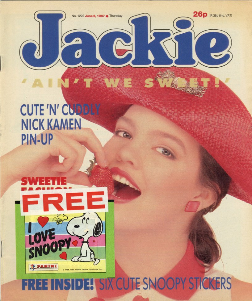 I took a selection of Jackie from 1987 and of Just Seventeen from 1985 and 1986 and looked for covers offering free gifts (unfortunately there are no gifts left except for the Snoopy stickers).