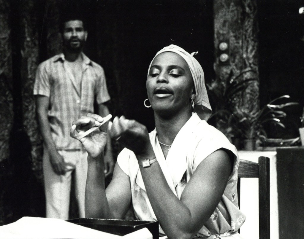 Guardian critic Robin Thornber wrote: ‘While it’s very specifically placed in a Jamaican context, his wry observation of the way that men and women relate applies to us all.’ Use reference EVT/POS/129 to view the promotional poster. This production photo featuring Wyllie Longmore as Jim and Anni Domingo as Gloria is not yet catalogued.