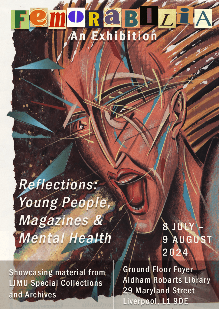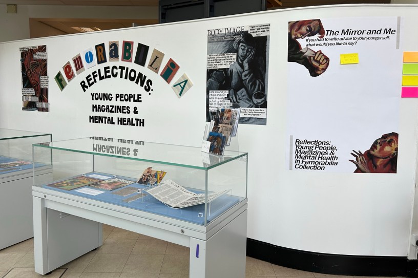 Reflections: Young People, Magazines and Mental Health is a collaborative research project between LJMU Special Collections & Archives, LJMU Media, Culture, Communication, and LJMU Psychology, to examine the social themes related to mental health within 1970s and 1980s magazines for women and girls. As part of this project, two Psychology students at MSc and BSc level curated this exhibition using material from our Femorabilia collection, focusing in particular on Jackie and Just Seventeen.