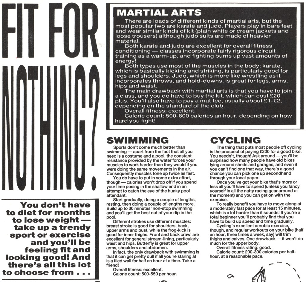 Towards the end of the 1970s and into the 1980s, articles appear more frequently to encourage body acceptance – a precursor to today’s body neutrality movement. Despite this, conflicting attitudes were also present when it came to challenging diet culture. Articles which promoted different body types as normal and healthy were presented alongside other articles on how to lose weight, encouraging young readers to take up sports with a list of how many calories they should expect to burn whilst doing so.
